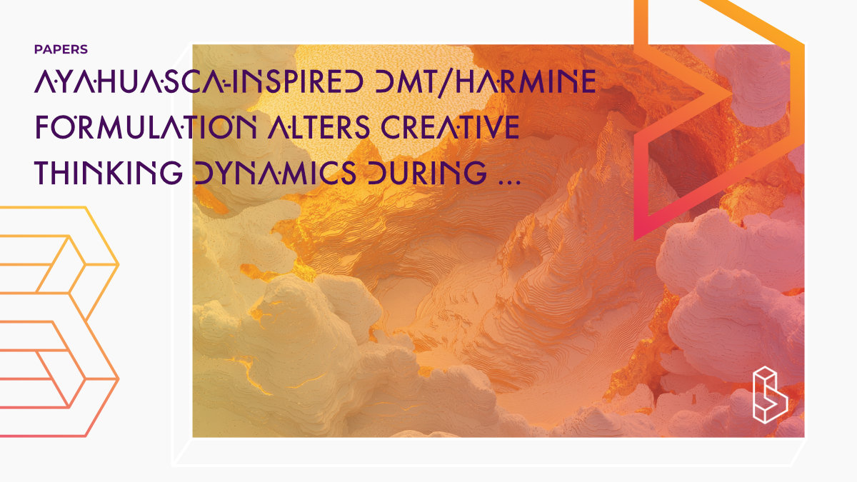 Suay, D., Aicher, H. D., Singer, B., Mueller, M. J., Jelusic, A., Calzaferri, L., ... & Scheidegger, M. (2025). Ayahuasca-inspired DMT/harmine formulation alters creative thinking dynamics during artistic creation. Journal of Psychopharmacology, 02698811251353256.